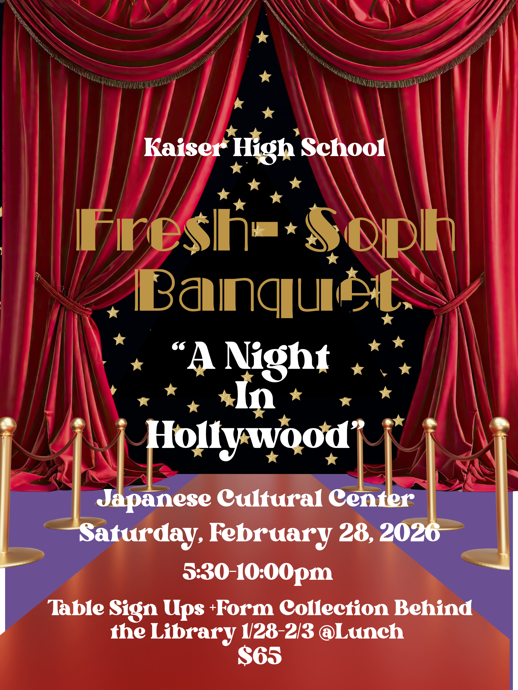 Please click here for more information and the permission form: Fresh-Soph Banquet. Hard copies are also available in the front office and library.
