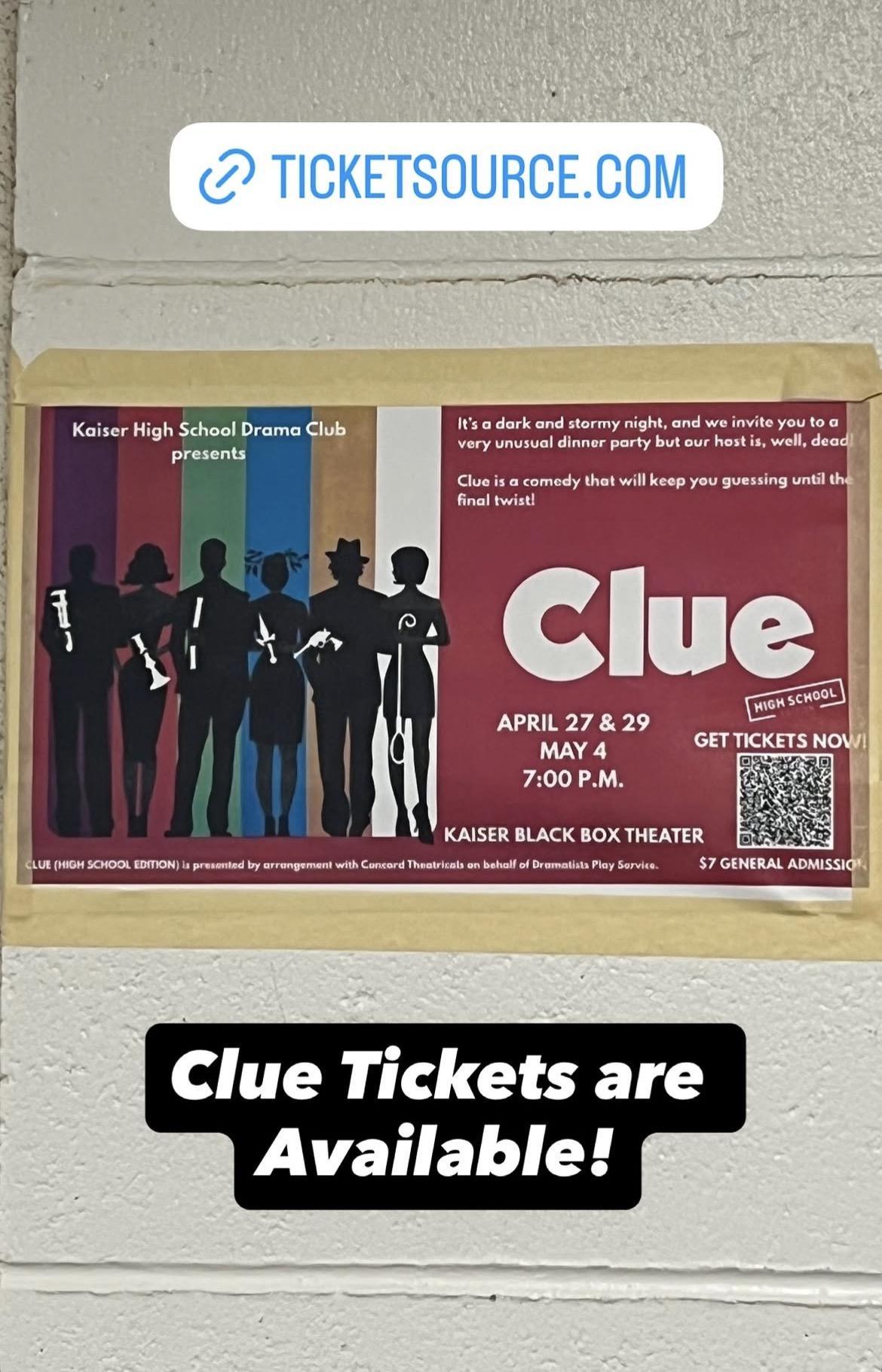Ticket Link: https://www.ticketsource.com/kaiser-high-school-drama-club/clue-on-stage-high-school-edition/e-kqqkgy